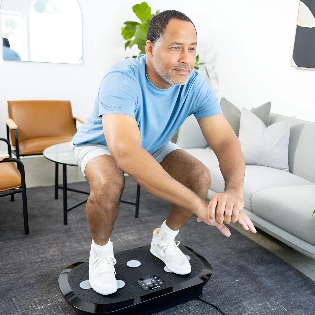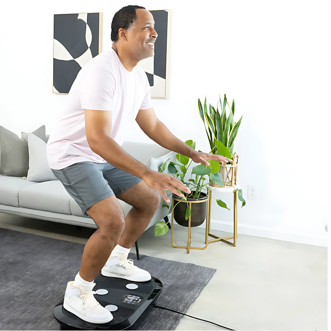 Designed for strength and stability, the 4D Vibration Plate features a large surface area and robust construction, supporting up to 500 lbs. Its non-slip platform ensures a secure and steady workout experience, perfect for users of all sizes. The low-profile design enhances comfort while allowing for a variety of workout intensities and exercises.